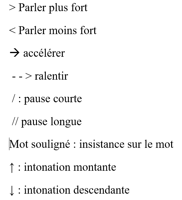 Travail à l’écrit sur son texte avec réflexion par groupes sur les effets à faire entendre en fonction du sens des adjectifs placés en début de vers (recherche et explication du vocabulaire). Annotation du texte avec des symboles à placer sur le texte pour préparer sa lecture, comme sur une partition de musique :
