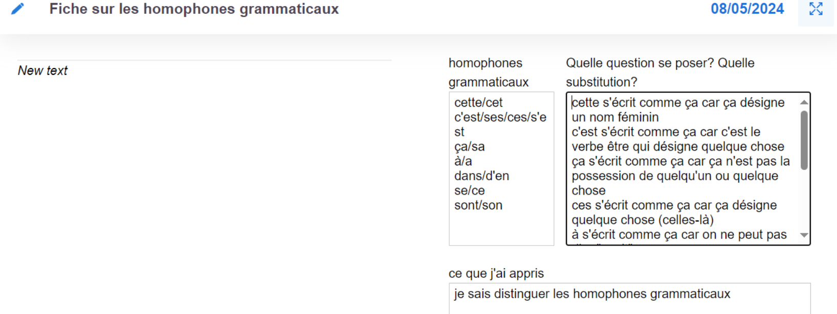 L’activité CORNELL NOTES (la prise de notes Cornell) demande aux élèves de rappeler les stratégies à mettre en place pour éviter ces erreurs. Exemple du début de la fiche élève sur les homophones.
