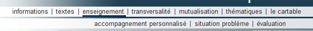 Il vous suffit ensuite de cliquer sur la sous rubrique qui apparait en dessous pour afficher son contenu. Par exemple, on observe qu'en cliquant sur la rubrique "enseignement", on fait apparaître trois sous-rubriques comme suit: