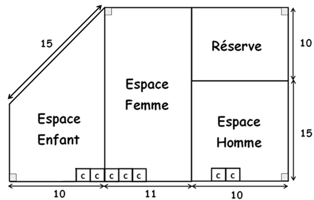 Les cotes sont en mètres. Le dessin ne respecte pas les proportions.
