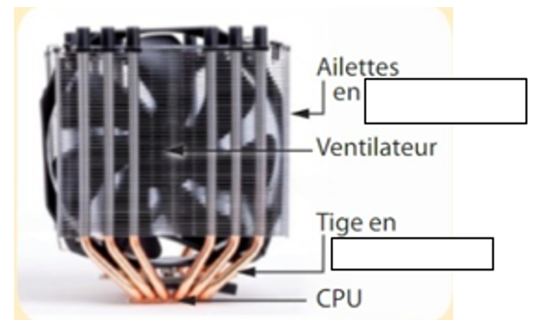 Les élèves doivent étudier les propriétés de conduction de différents matériaux constituant un dissipateur d'énergie associé au refroidissement d'un microprocesseur (CPU).