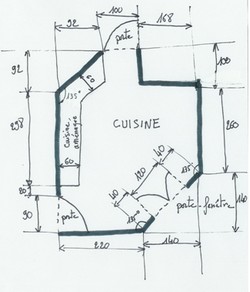 A la demande d'un client, un cuisiniste doit réaliser le plan d'implantation d'une cuisine aménagée.