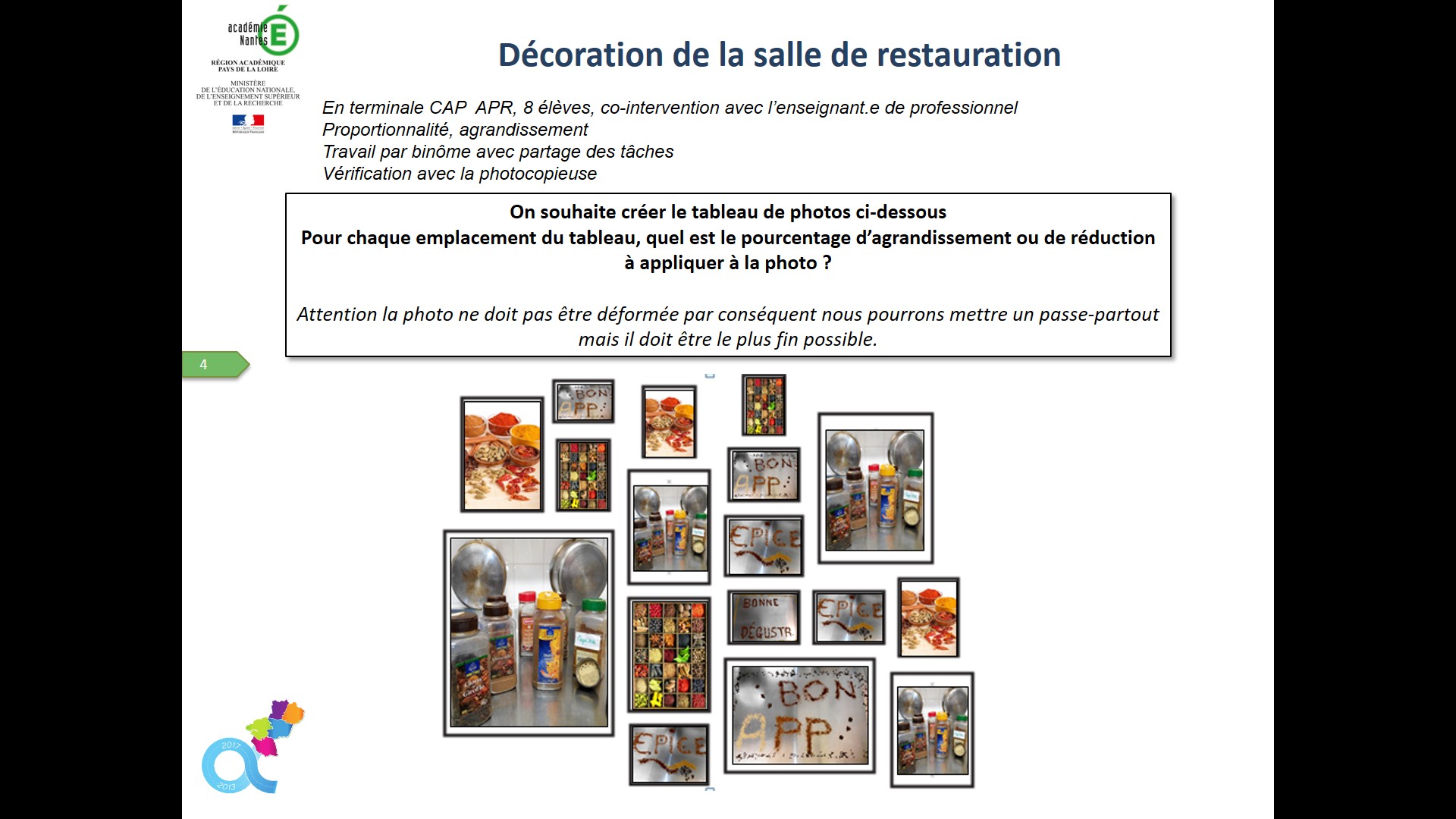 Un exemple de projet intégrant plusieurs disciplines mené dans une classe de CAP. Le projet porte sur la rénovation du restaurant d’application, le but est d'impliquer les élèves dans une situation concrète, de valoriser les élèves qui ont participé.