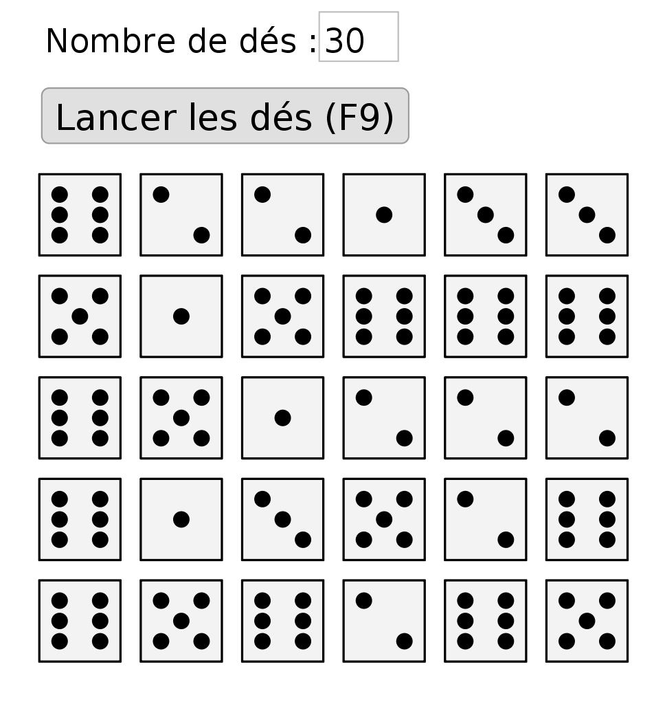 Le nombre de faces est modifiable ainsi que le nombre de dés.