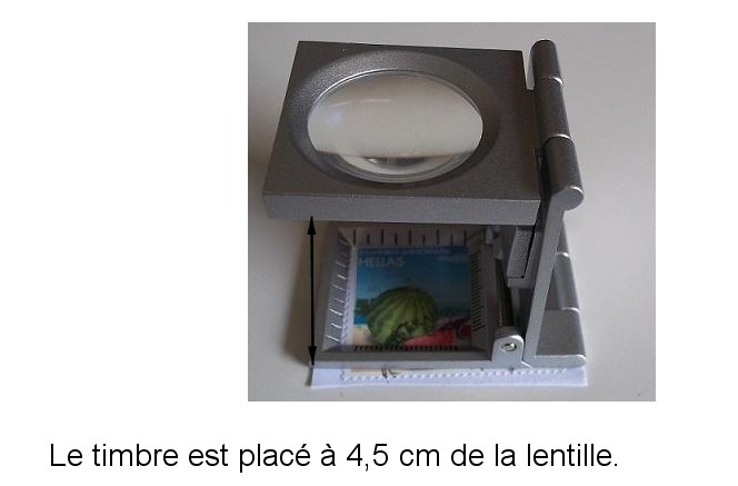 Est-ce que le grossissement indiqué sur la boîte est égal à la valeur du grandissement de l'image du timbre ?
