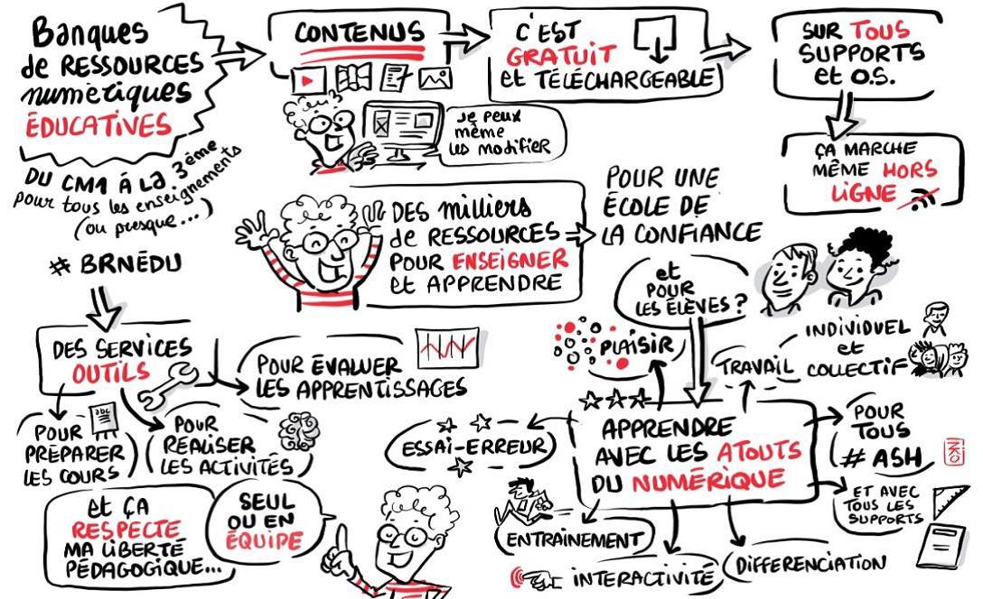 Les banques de ressources numériques pour l'École (BRNE) offrent aux professeurs et aux élèves du CM1 à la 3e des ressources (contenus et outils) pour augmenter les apprentissages via la création d'activités et de supports de cours, la réalisation des cours, le suivi et l'évaluation des compétences, les situations d'entraînement ou de révision.