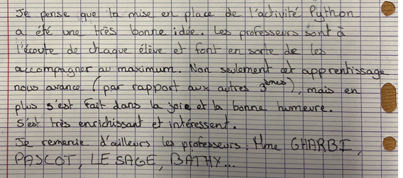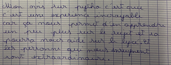 - Première séance découverte en mathématique : les élèves commencent par scratch pour les amener tout doucement à Python.