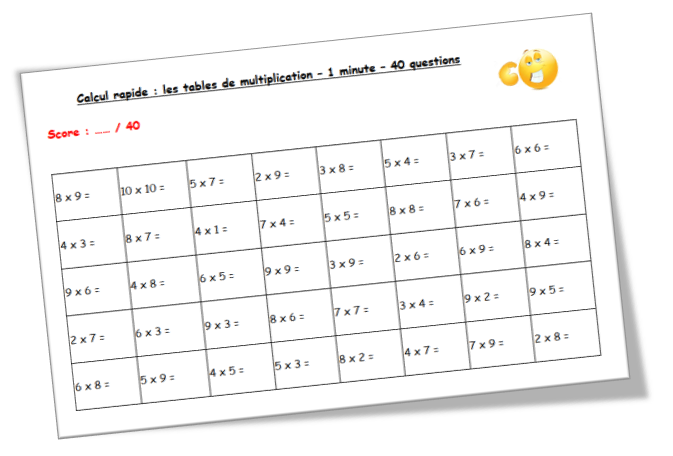 1 minute individuelle pour chaque élève présent pour faire le maximum de tables (exactement comme le test) : 40 calculs.