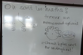 Avec l’un des groupes, Mme Zimmermann a pu compléter avec un problème classique et fort utile mais encore ouvert : le problème du voyageur de commerce. Là encore, les mathématiques vont aider à optimiser, il s’agit ici d’optimiser des déplacements afin de réduire les coûts. « On a besoin de chiffres et de connexions entre les chiffres. Pour donner des connexions entre les chiffres, on utilise des équations. »
