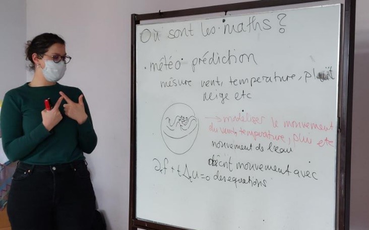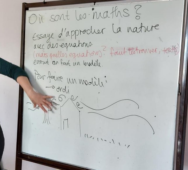 À partir d’un exemple lié à l’étude des vents, Mme Zimmermann a montré comment les mathématiques essaient d’approcher la nature avec des équations, l’objectif étant de faire un modèle, modèle que les mathématiques chercheront à améliorer.