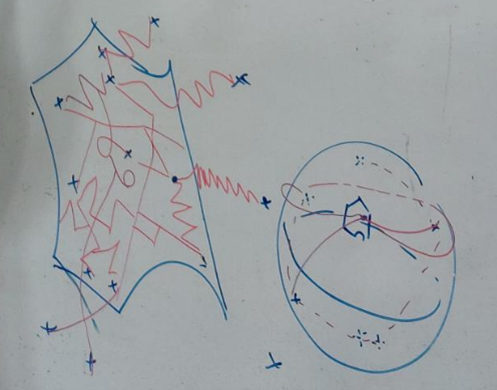 Une question amenant une autre question, on peut élargir cette situation étudiée sur une surface pouvant être ramenée à une surface plane à un problème identique mais sur la sphère terrestre.