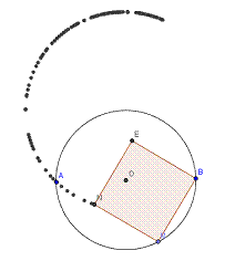 Pour les élèves ne connaissant pas les similitudes, la preuve peut aussi se faire avec les nombres complexes en choisissant un « bon » repère c'est à dire par exemple un repère pour lequel on ait : A(-1 ;0) B(1 ;0) et F(0 ;1). On conjecture l'affixe du centre F de