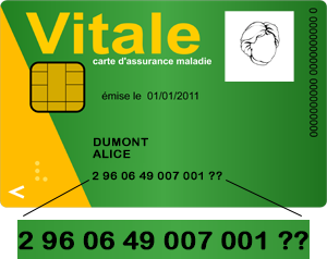 * un chiffre pour le sexe de l'individu (1 : homme ; 2 : femme) ; * deux chiffres pour l'année de naissance, puis deux chiffres pour le mois de naissance ; * deux chiffres pour le département de naissance, puis trois chiffres pour la commune de naissance ; * trois chiffres correspondant au numéro d'inscription sur le registre d'état civil ; * un nombre à deux chiffres, qui est une clé de détection d'erreur calculée à partir des 13 précédents. On note A le nombre constitué des 13 chiffres.