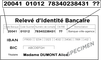 * d'un nombre de 21 chiffres (cinq identifiant la banque, cinq identifiant le guichet, et onze représentant le numéro de compte) ; * d'un nombre de 2 chiffres qui est une clé de détection d'erreur dans l'un des 21 chiffres précédents.