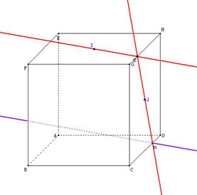 ABCDEFGH est un cube I désigne un point quelconque appartenant à la face carrée EFGH J désigne un point quelconque appartenant à la face carrée GHDC Construire l'intersection de la droite (IJ) avec le plan (ABCD)