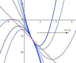 4) Retour sur l'algèbre : à faire pour la prochaine séquence sur feuille... En exprimant, en fonction de m, le discriminant de P, déterminer selon les valeurs de m le nombre de solutions de l'équation P(x) = 0. Vérifier la cohérence de votre étude avec les résultats de la question 3).
