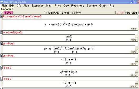Vérifier votre feuille en prenant m = 11... 3) Exploitation de la feuille de calcul. Est-il possible de choisir m de façon à ce que l'équation P(x) = 0 admette :