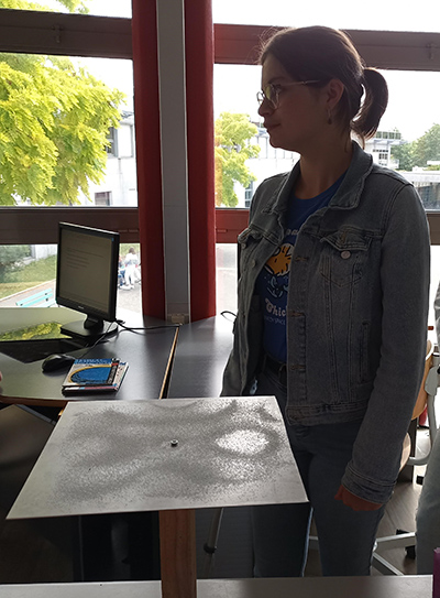 Les portraits des mathématiciennes de l'Antiquité jusqu'à nos jours ont aussi été exposés. Les élèves ont proposé également une petite expérience qui permet de comprendre le domaine de recherche de Sophie Germain. Et enfin, les élèves pourront consulter des livres (que le professeur documentaliste a commandé pour ce projet) et des sites web.