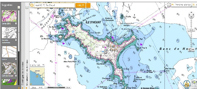 - On explique également les différences de couleurs sur la carte (blanc = profond - bleu = moins profond - vert = il n'y a pas toujours de l'eau) et les différentes sondes inscrites (43 signifie qu'il y a toujours au minimum 4m30 d'eau).