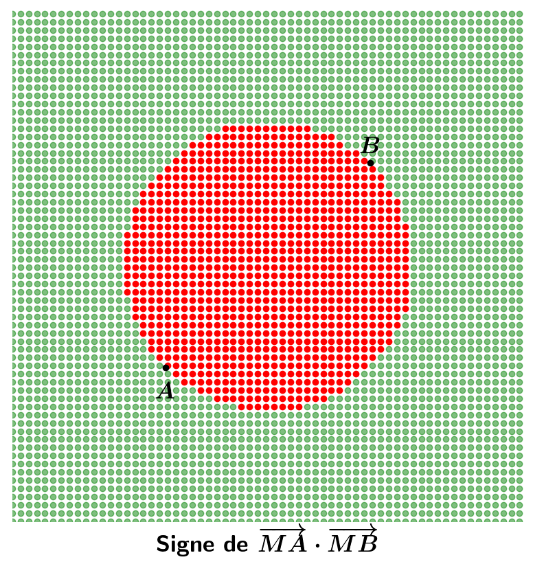 Dans le programme : Ensemble des points M tels que \(\overrightarrow{MA}\cdot\overrightarrow{MB}=0\) (Démonstration avec le produit scalaire).