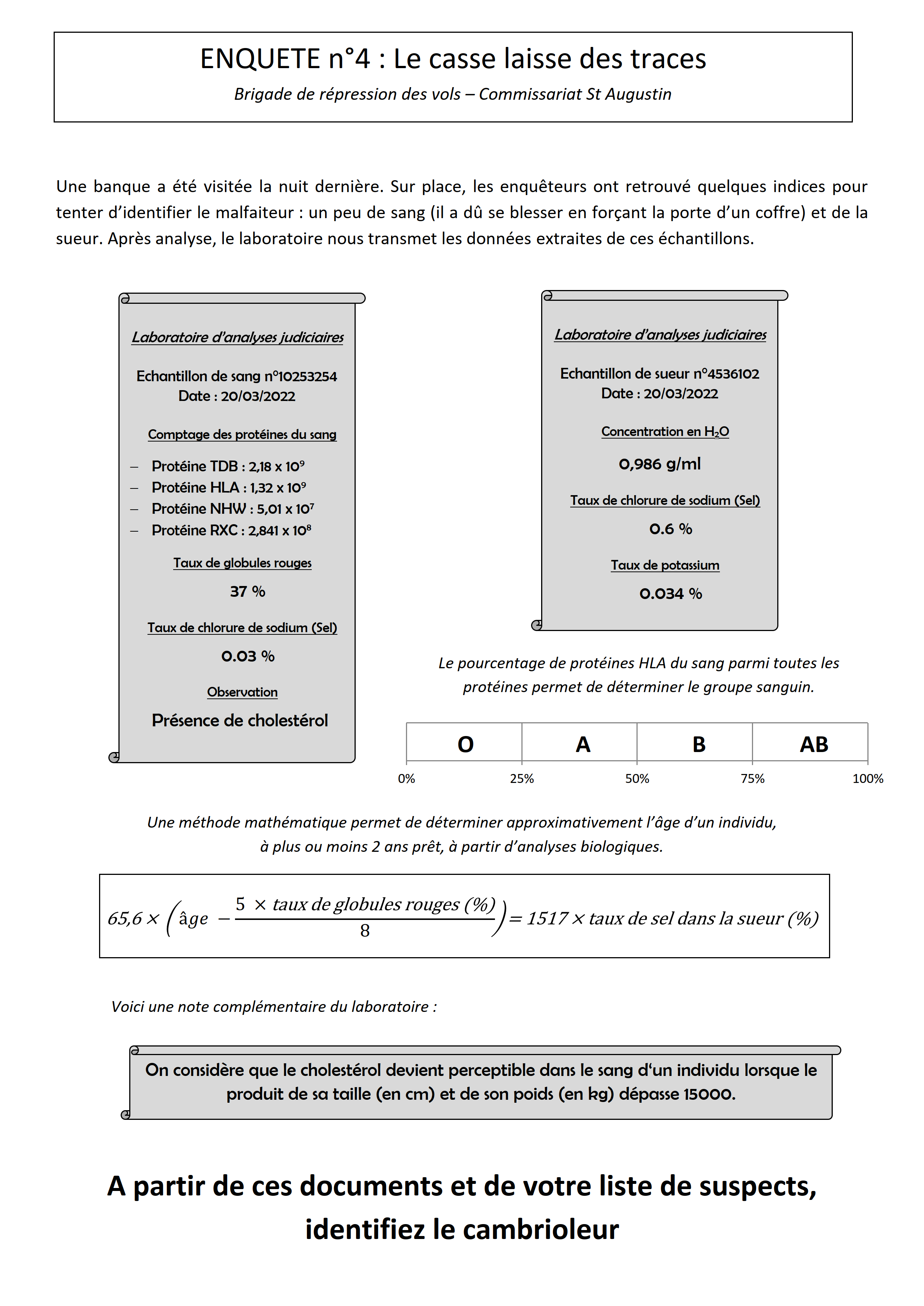 - Une fois le coupable trouvé et validé par le professeur, les élèves remplissent leur rapport en détaillant la démarche.
