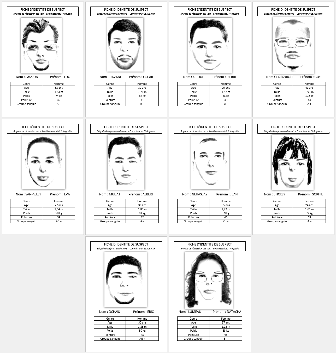 - Fiches suspects (10 pages)