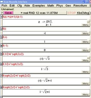 Les élèves font quelques essais en choisissant quelques nombres complexes de module 1: z = i, z = - i, z = -1 . Les calculs sont faits à la main. Ils ont ensuite quelques difficultés pour trouver d'autres complexes de module 1 : ils pensent à