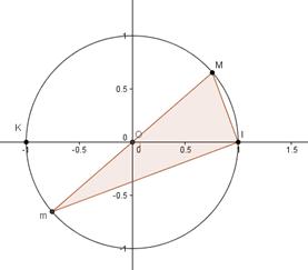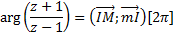 En appelant I le point d'affixe 1, K le point d'affixe -1, M le point d'affixe z et m le point d'affixe - z, on peut écrire :