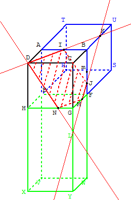 Si les élèves ne connaissent pas ce théorème, ils feront des constructions en sortant du cube : Géopace, utilisé au vidéo projecteur, permettra de mieux visualiser un nouveau solide placé derrière le cube ou en dessous du cube. Le professeur pourra alors aider les élèves à découvrir puis à formuler le théorème ci-dessus.