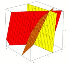 Cette activité est une situation à faire vivre en Terminale S. Il s'agit de visualiser une famille de plans avec un logiciel tel que Dérive pour observer que tous ces plans contiennent tous une même droite à déterminer.