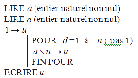 Les élèves choisissent d'installer cet algorithme sur leur calculatrice, ils obtiennent des résultats mais mettent du temps à réaliser que cet algorithme calcule a^n.