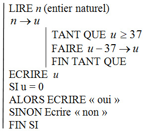 Faire fonctionner cet algorithme pour n=250, n=185, n=1036. Dans quel cas l'algorithme fournit-il la réponse « oui » ? Dans quel cas fournit-il la réponse « non » ?