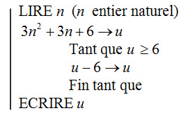 a) Faire fonctionner cet algorithme pour plusieurs valeurs de n .