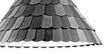 Après la tempête du 26 décembre 1999, un couvreur a dû reconstituer à l'identique un toit conique partiellement détruit. Les ardoises sont disposées en rangs successifs en partant du bas.
