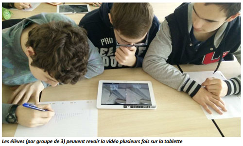 Les élèves sont par groupe de 3. Une tablette est à leur disposition. Ils peuvent se connecter à l’ENT du collège pour revoir la vidéo.
