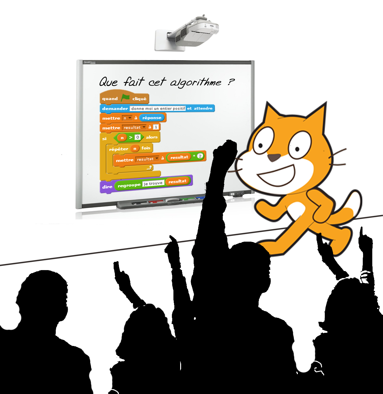 On peut aussi aborder l'algorithmique avec les élèves à l'occasion de questions de début de séance dans lesquelles on glisse régulièrement une ou deux questions d’algorithmique. Voici quelques idées de questions qui peuvent être proposées dans ce cadre. Cela permet de continuer à travailler ces notions sous forme débranchée et ainsi à entretenir et à consolider les compétences et les connaissances abordées.
