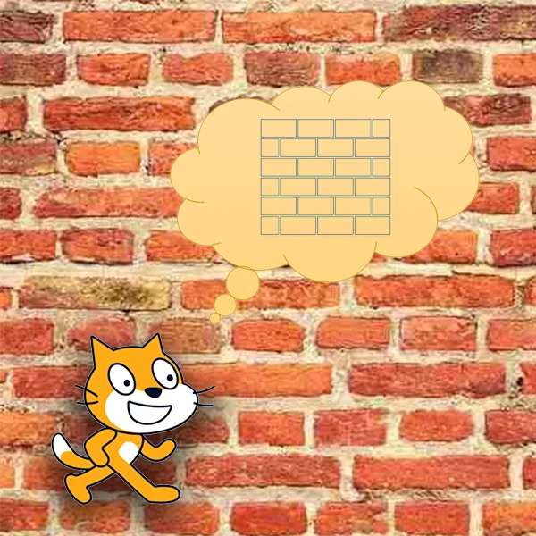 - Informatiquement, les objets « brique » et « demi-brique » ne doivent pas être créés à chaque fois que l’on en a besoin et pour cela, on utilise une instruction de type « bloc ». Je leur montre ce que donnerait un petit programme qui utiliserait ce type d’instruction et qui donnerait le résultat ci-dessous.