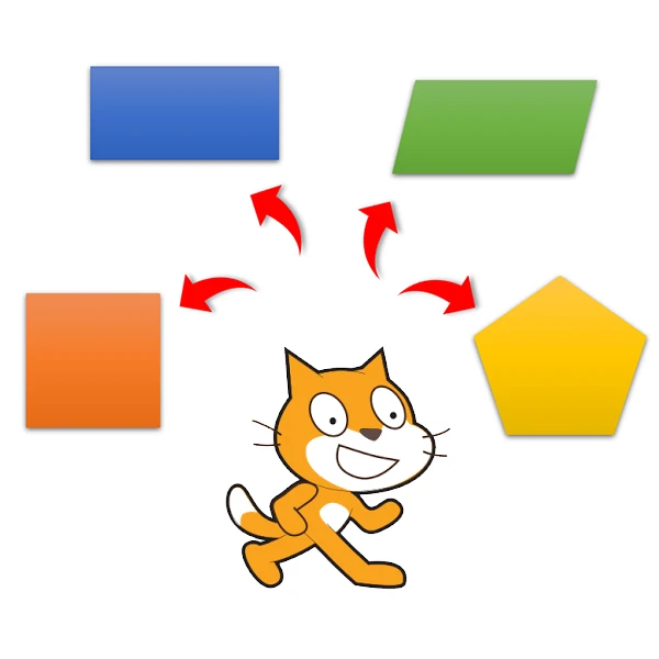On annonce aux élèves qu’on va leur demander de construire des figures géométriques simples en programmant les déplacements du lutin (le chat…).
