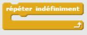 La première proposée ici est trompeuse : il s’agit du « répéter indéfiniment ». Il s’agit d’une instruction fort peu académique en informatique mais bien pratique ici. Il est vrai que Scratch possède un bouton d’arrêt externe qui corrige cette imperfection :