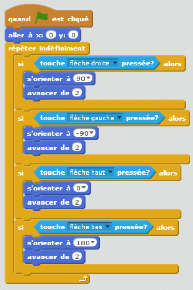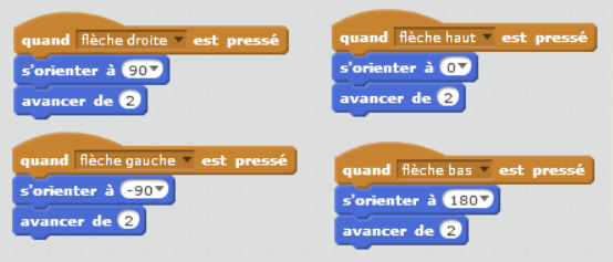 Ce programme va gérer des déplacements dans les 4 directions (droite, gauche, haut, bas).