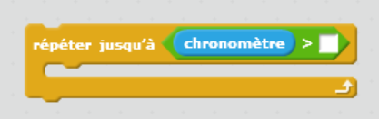 Cette instruction affiche le temps écoulé, en secondes, depuis l’ouverture du logiciel sans jamais s’arrêter. Cela implique que pour l’utiliser, il faut être attentif à toujours le réinitialiser au début du programme et être conscient qu’on ne pourra pas tester une égalité de temps mais seulement une inégalité à l’aide des instructions suivantes :
