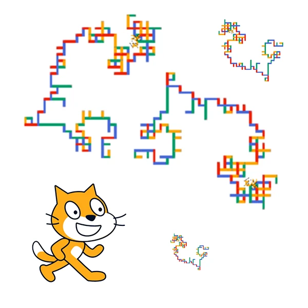 - ensuite parce que la possibilité offerte par Scratch de jouer et rejouer de multiples fois la démarche du lutin permet de bien percevoir que les résultats produits par les programmes dans le cadre de ces déplacements liés au hasard sont très nombreux.