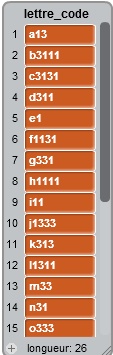 Dans cet exemple, les élèves ont prévu de coder les lettres, l’espace et les chiffres de 0 à 9.