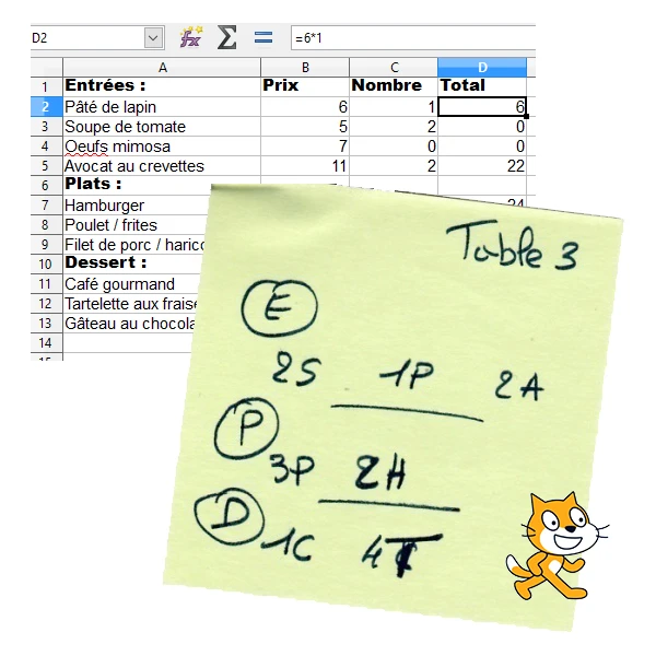 On dit qu'il ne faut pas vivre pour manger mais manger pour vivre. Ici le restaurant nous permet un travail sur les opérations à travers le tableur et l'algorithmique.
