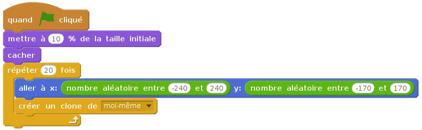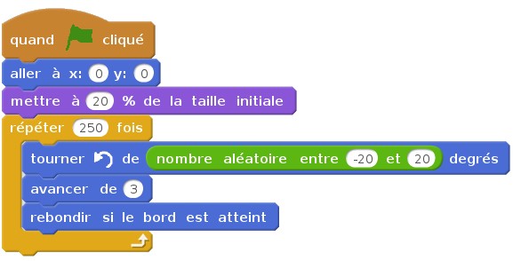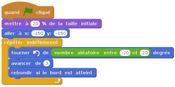 Créer un nouveau lutin (n’importe lequel) et lui donner le programme suivant.