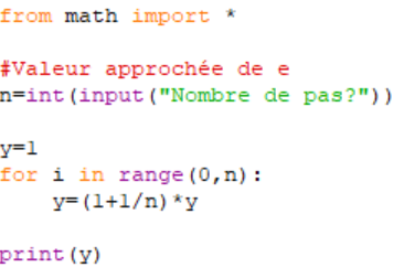 Le but de ce document est de proposer une technique de calcul d’une valeur approchée de e. L’idée est d’effectuer une construction sur papier avant de basculer sous Python pour augmenter le nombre d’étapes de calculs