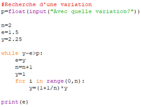 - Modifier le programme précédent pour obtenir une valeur de e avec une précision choisie.