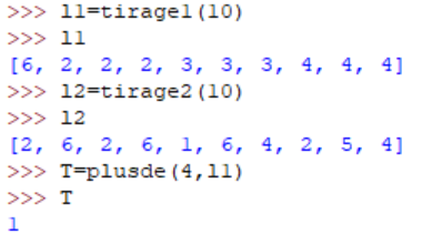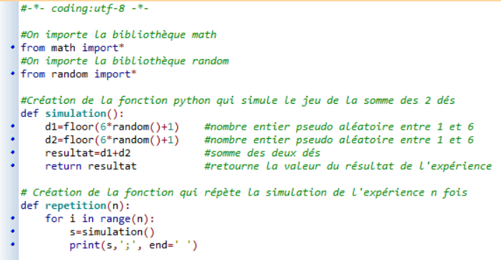 Simulation d'un jeu de 2 dés - répétition de la simulation