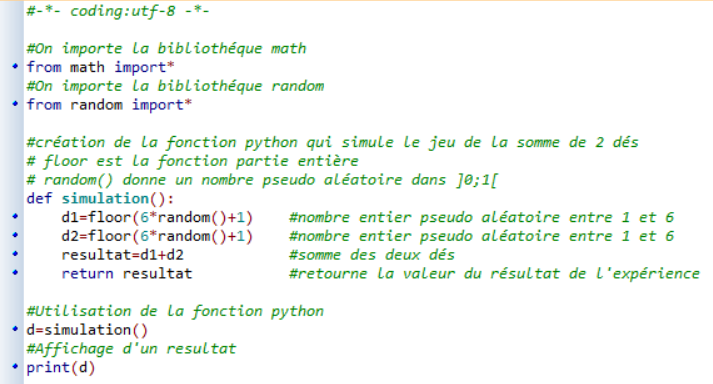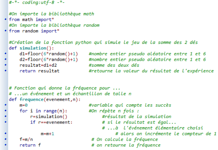Simulation d'un jeu de 2 dés - calcul de la fréquence d'un évènement pour un échantillon de taille 'n'
