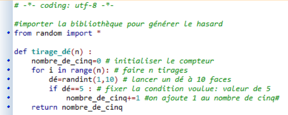 Lancer un dé à 10 faces 1 000 fois de suite en comptabilisant le nombre d'apparition du 5